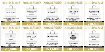 ファッションブランド公式の2016年福袋がたくさん揃っています。